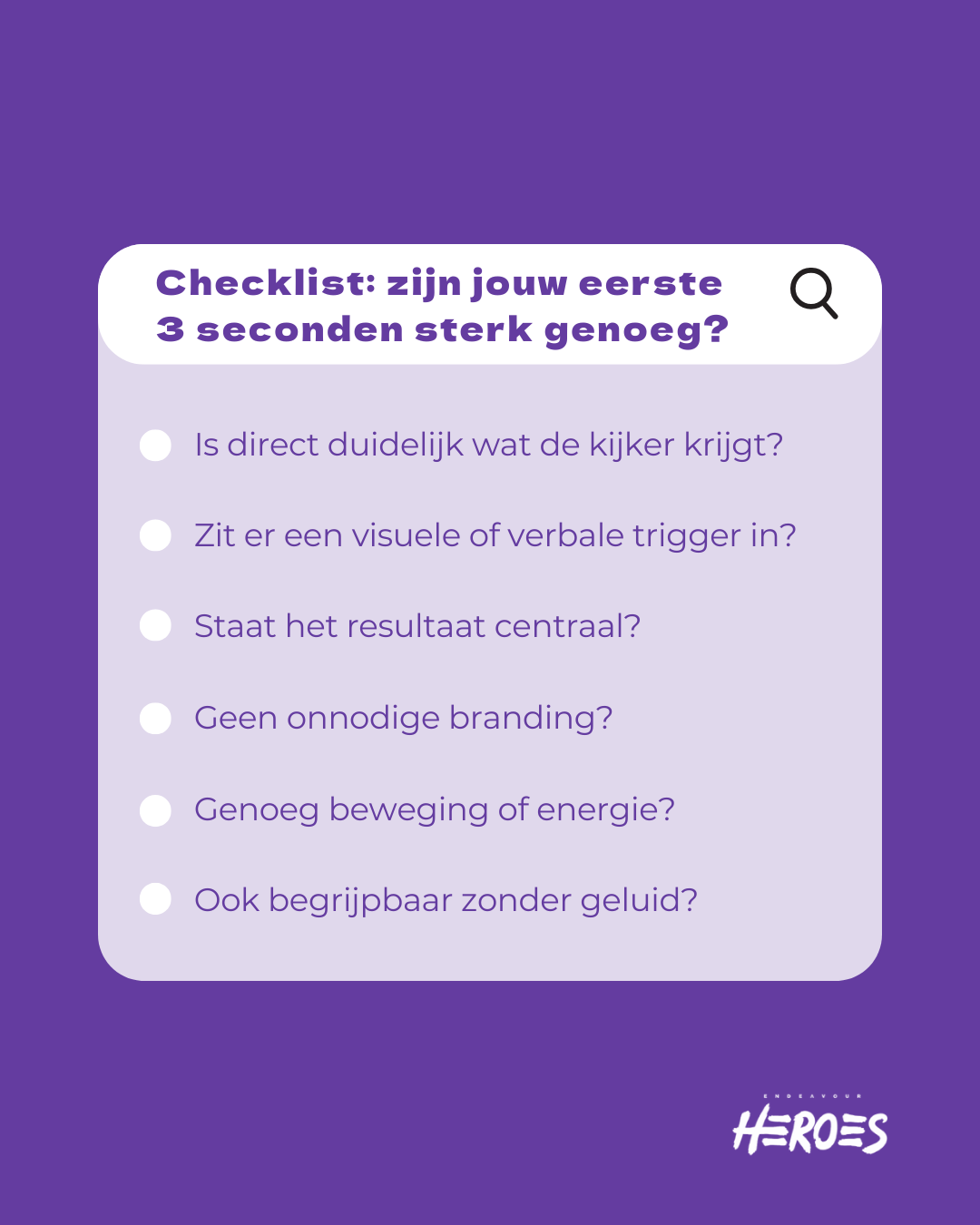 \nWil je zeker weten dat jouw video de eerste 3 seconden wint? Download hier de gratis checklist. En wil je hulp bij het uitwerken van je contentformats en sparren over je social media-strategie? Schakel een van onze online marketeers in, zij denken graag met je mee.